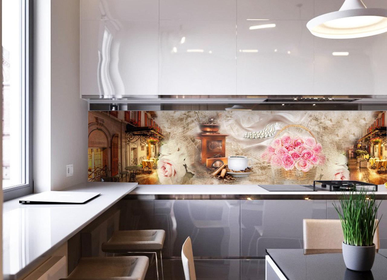 Кухонний фартух Вечірня прогулянка наклейки для стінових панелей троянди вінтаж кави плівка для кухні 600*2000 мм